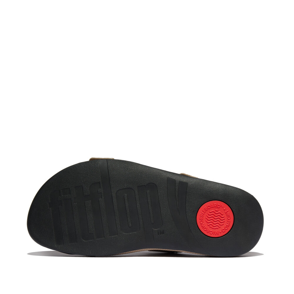 GOGH MOC MENS BUCKLE EMBOSSED-LEATHER SLIDES - TAUPE
