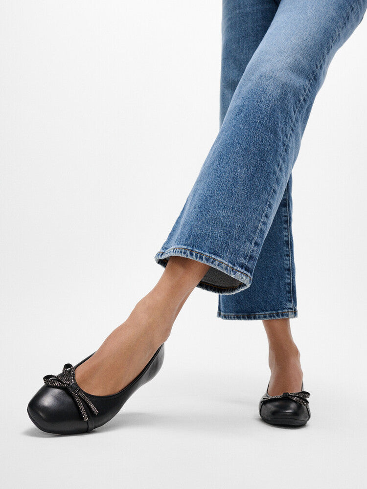 Crafted in luxe butter-soft nappa leather; here adorned with an elegant ëcrystalí-covered bow. Carefully designed for an enhanced fit. And ultra comfortable, thanks to supportive moulded footbeds and our Dynamicushô cushioning hidden in the 'flat' soles. Light, refined, beautiful day-to-evening. That rare thing, a chic ballerina your feet will love.